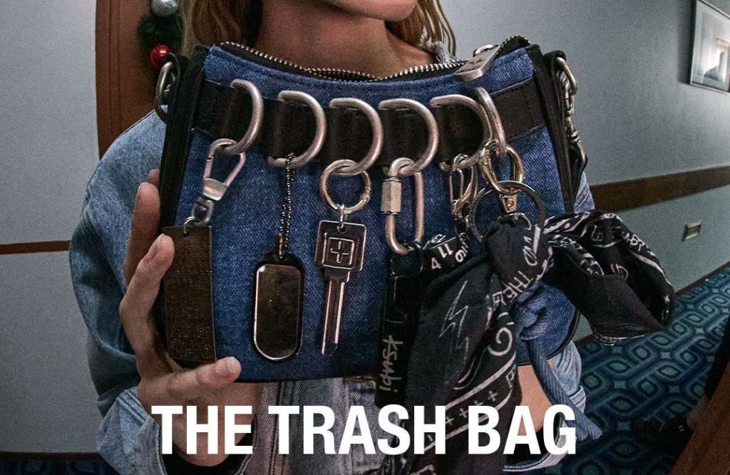 Ksubi’s trash bag is available in blue and black denim and comes with a bandana, key and mirror charm. And you can add more charms available separately.