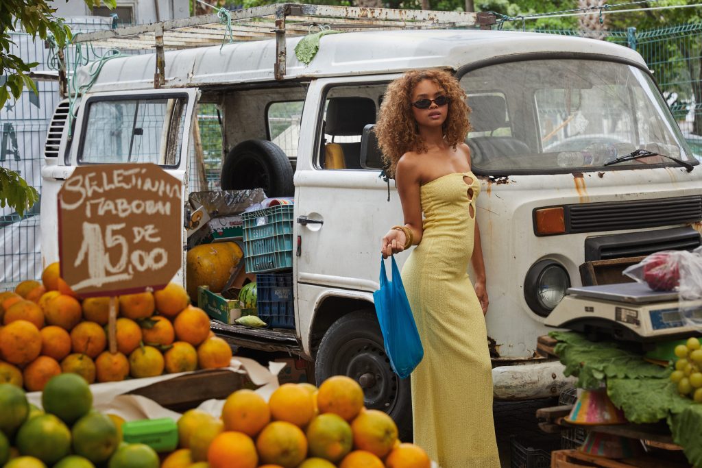 Effortless pieces that speak loudly of tasteful prints, rich textures, and lively colors. Shot across Rio de Janeiro from the painted steps of Escadaria Selarón and the rhythm of the General Osório fruit market to the shores of Ipanema Beach, each setting captures the city’s real spirit and the lives that move through it.