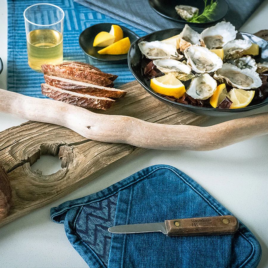 UBi-IND is part of the Mi Cocina Collection of kitchen and home products, which turns raw selvedge denim into cook- and housewares. Simpson’s Mi Cocina’s products – all made of selvedge denim, include aprons, oven mitts, place settings and more.