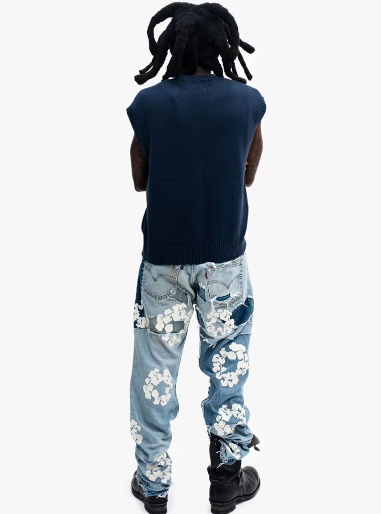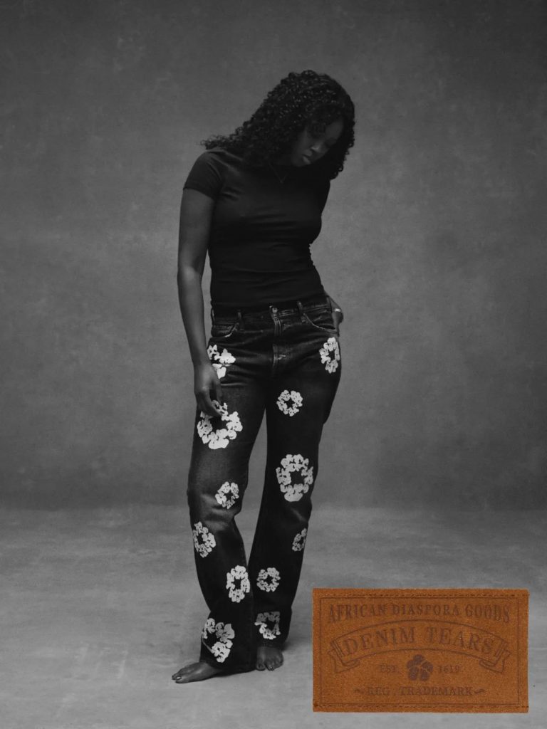 The collection, titled “YOU WON’T BLEED US,” launched this month, featuring collaborations (Rolling Stones, Black Yankees) and its own core denim line, “DENIM BY DENIM TEARS,” with iconic Cotton Wreath motifs on new straight/loose fits.