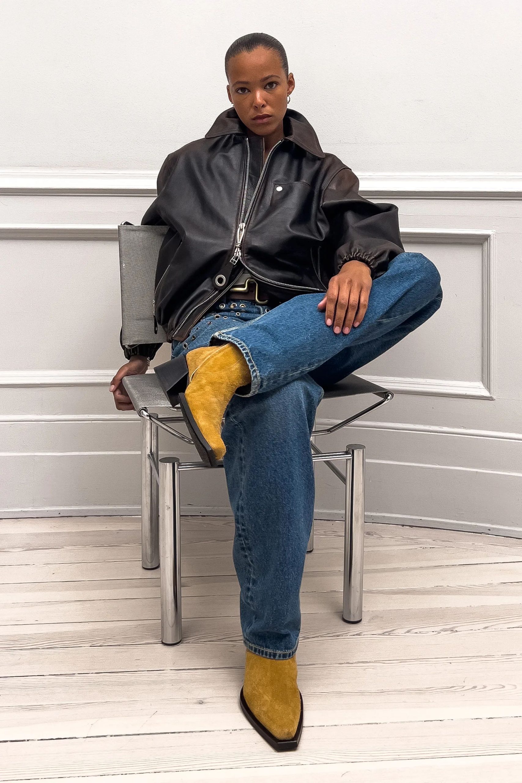 Eytys’ spring 2025 collection is titled “Le Lion” and embraces a minimalist Stockholm style. The clothes have an easy, worn-in look, particularly the Echo jeans, which are three times the size of the label’s best selling Benz jeans with a very high waist and a long, exposed button fly. An almost drop crotch style.