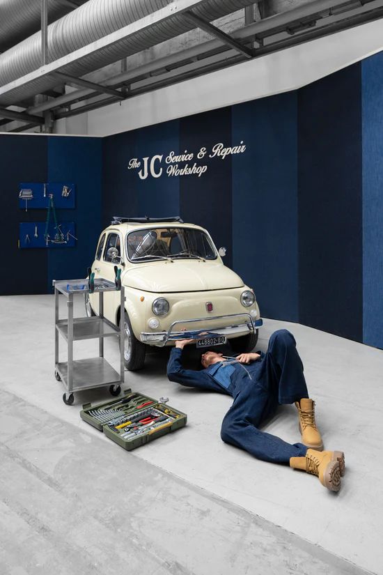 Jacob Cohen’s Spring/Summer 2026 collection is framed around the idea of a village built in denim. A setting where different characters (mechanic, washerwoman, beekeeper, bar patron, casino guest) co-exist, all united by denim as the backdrop of a community.