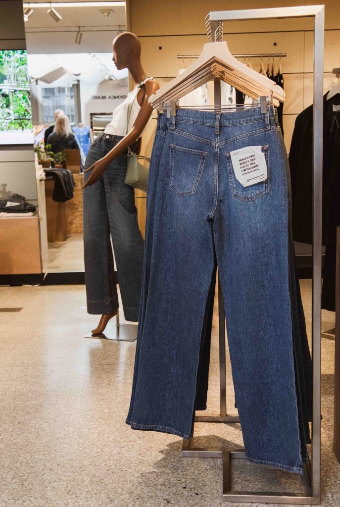 The bespoke dress worn by Amber Valletta is the result of a world-first circularity project that debuted at this year’s Green Carpet Fashion Awards during Oscars week. “Eat your jeans” – literally – a suggestion from Amber!