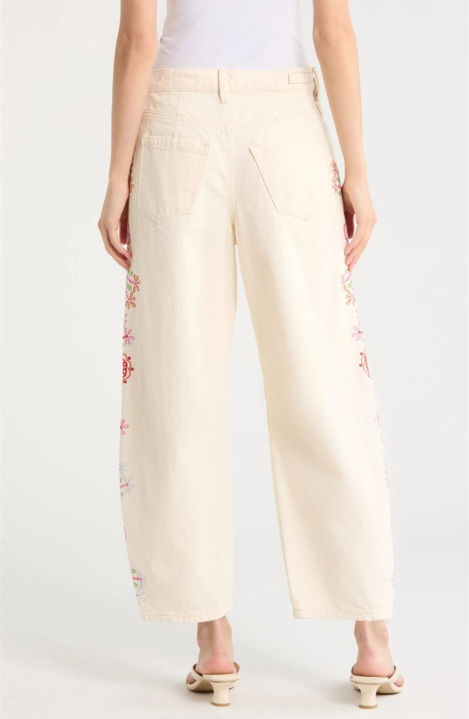 BLANKNYC Floral Embroidery Barrel Leg Jeans ($148)