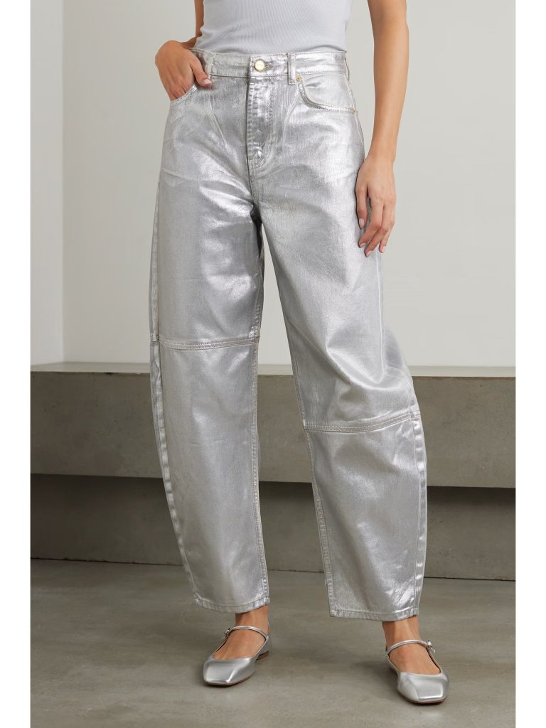 GANNI Metallic High-Rise Jeans ($375), also available in metallic blue and green